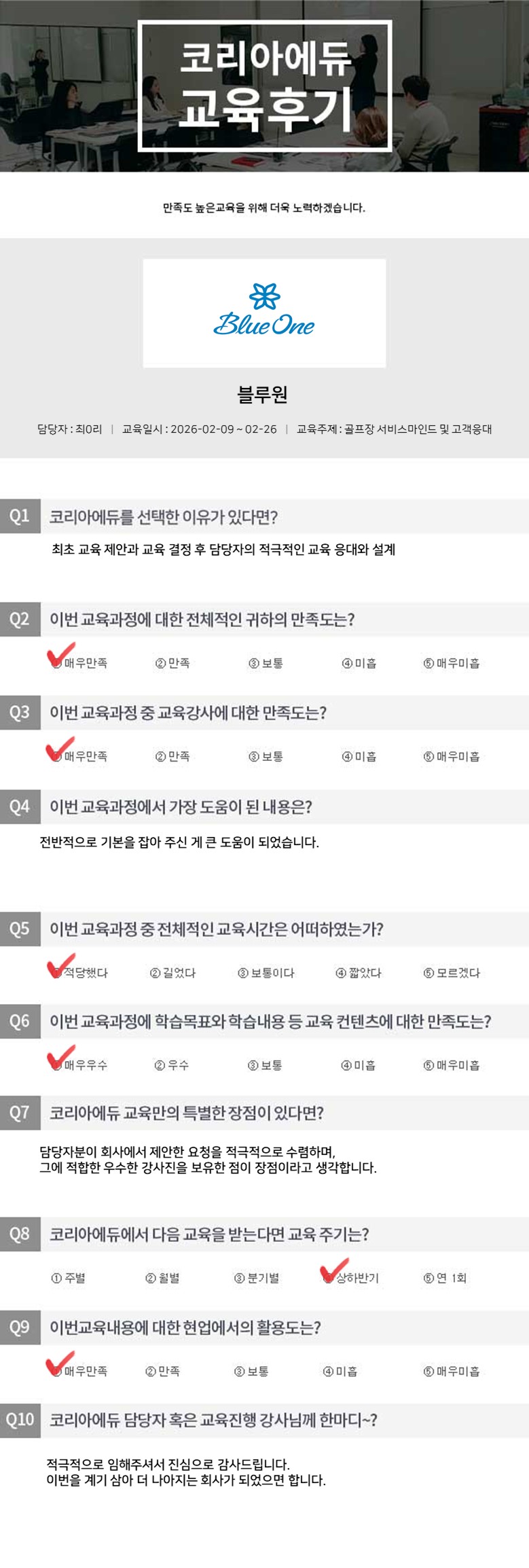 ºí·ç¿ø °ñÇÁÀå ¼ºñ½º¸¶ÀÎµå ¹× °í°´ÀÀ´ë ±³À° Èıâ