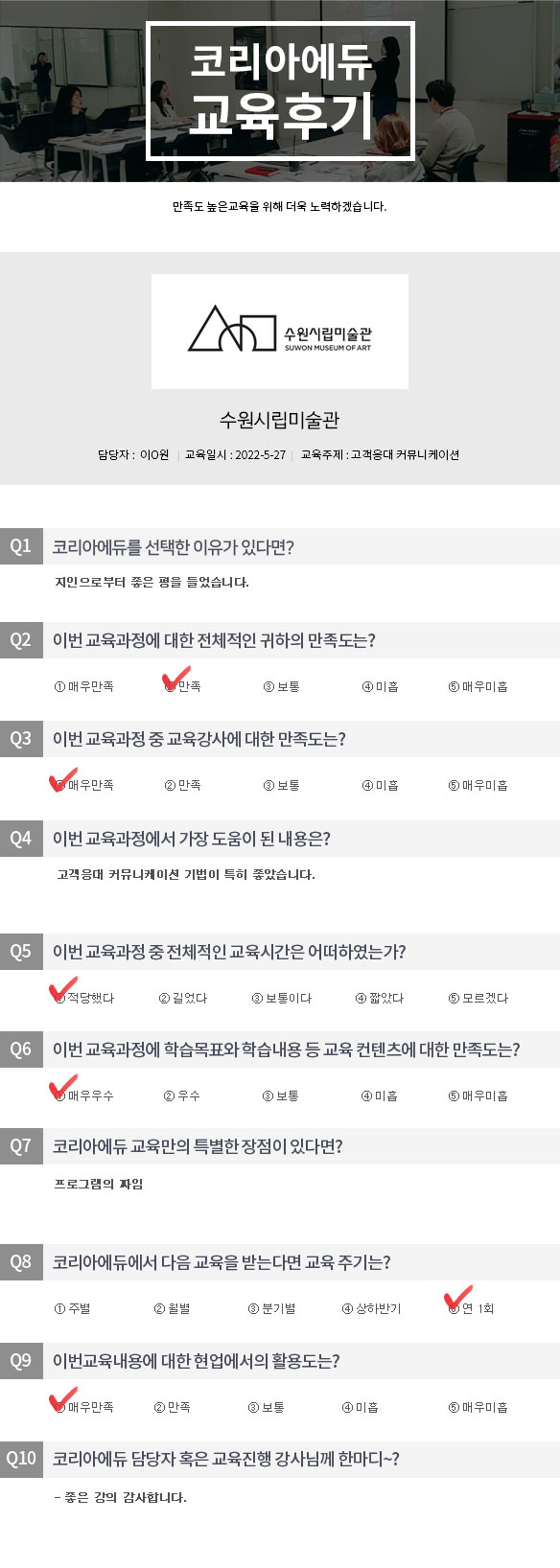 ¼ö¿ø½Ã¸³¹Ì¼ú°ü °í°´ÀÀ´ë Ä¿¹Â´ÏÄÉÀÌ¼Ç ±³À° Èıâ