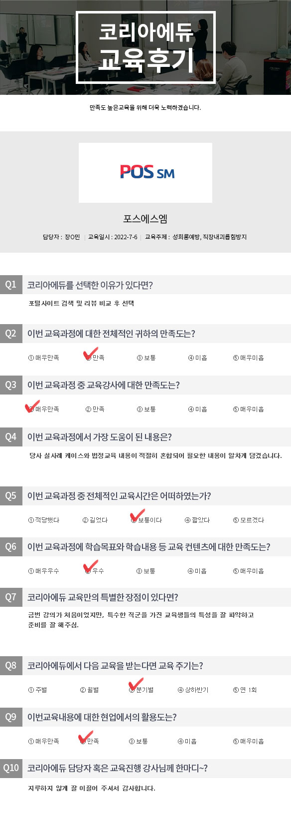 Æ÷½º¿¡½º¿¥ ¼ºÈñ·Õ¿¹¹æ, Á÷Àå³»±«·ÓÈû¹æÁö ±³À° Èıâ