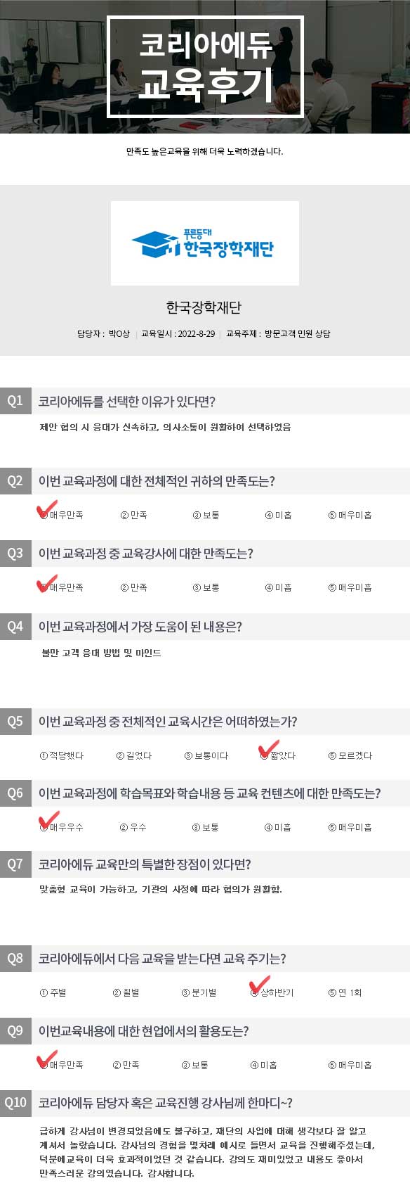 Çѱ¹ÀåÇÐÀç´Ü ¹æ¹®°í°´ ¹Î¿ø»ó´ã ±³À° Èıâ