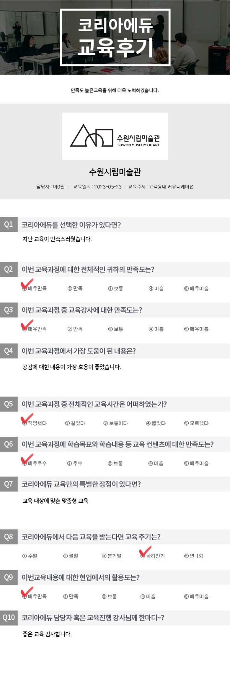 ¼ö¿ø½Ã¸³¹Ì¼ú°ü °í°´ÀÀ´ë Ä¿¹Â´ÏÄÉÀÌ¼Ç ±³À°Èıâ