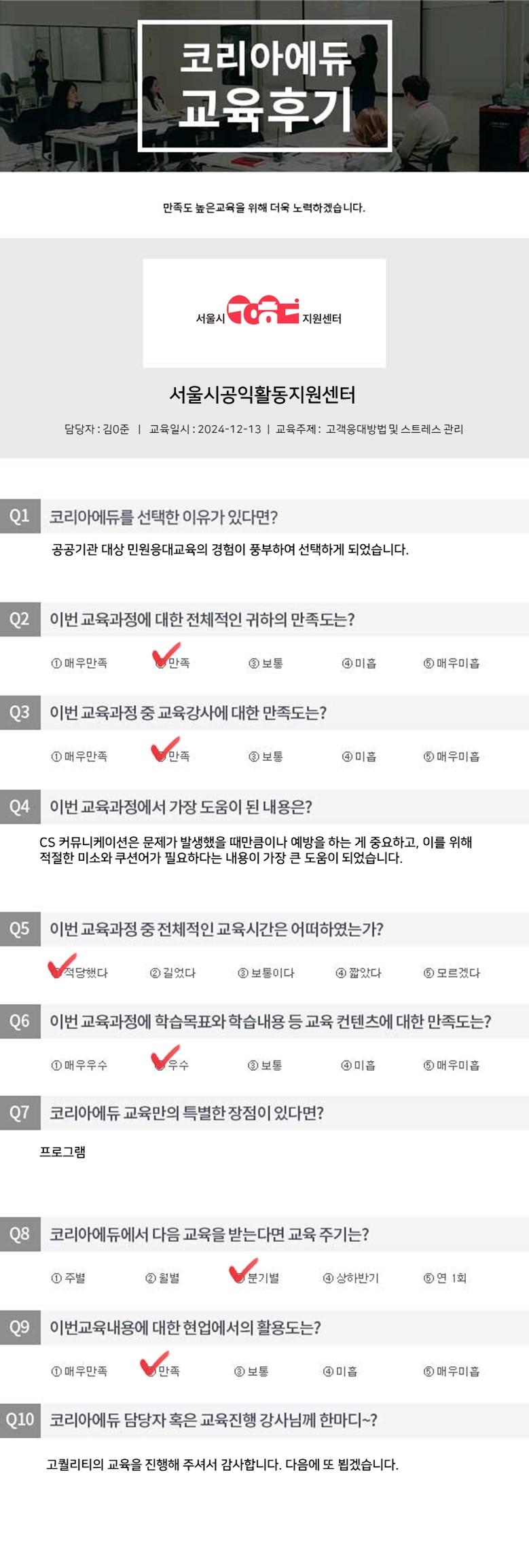 ¼¿ï½Ã°øÀÍȰµ¿Áö¿ø¼¾ÅÍ °í°´ÀÀ´ë¹æ¹ý ¹× ½ºÆ®·¹½º °ü¸® ±³À° Èıâ